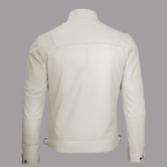 Sleek Men’s White Leather Café Racer Moto Jacket